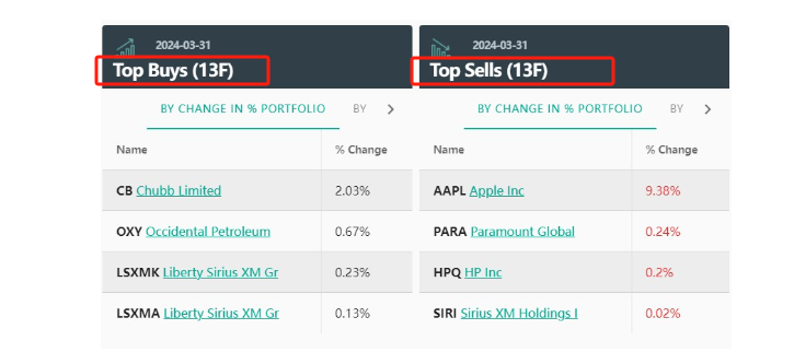 The 13F U.S. stock holdings file submitted by Buffett's Berkshire Hathaway shows that in the first quarter, Berkshire increased its holdings of Occidental Petroleum (OXY.N) by 4.3 million shares, liquidated its Hewlett-Packard (HPQ.N), and reduced its holdings of Apple (AAPL.O) by 116 million shares, reducing its holdings to 40%; it bought 25.92 million shares to establish a position in Chubb Insurance, with a holding value of approximately US$6.7 billion.